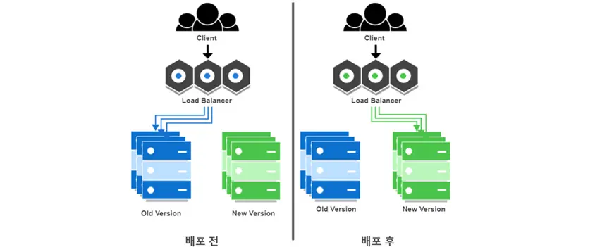 ALTER TABLE posts ADD (views NUMBER(19,0) DEFAULT 0 NOT NULL);블루-그린 배포는 무중단 배포의 대표적인 전략으로, 현재 운영 중인 환경(블루)과 새로운 버전의 환경(그린)을 동시에 운영하다가 트래픽을 한 번에 전환하는 방식입니다.